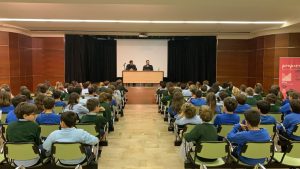 Lolo y Rafa López cambiaron la pista por un auditorio para impartir una conferencia a los alumnos del colegio Montesión para transmitir hábitos y conductas que puedan resultar positivas para su crecimiento personal. Los dos jugadores del primer equipo del Palma Futsal se dirigieron al centro educativo para realizar una exposición de pautas que han aprendido a lo largo de su carrera deportiva y que pueden ayudar a los jóvenes para su vida diaria ya que el deporte exige de una conducta y unos hábitos perfectamente extrapolables a muchas otras facetas de la vida. Un horario constante de trabajo, pautas alimenticias adecuadas o una conducta responsable consigo mismo y con los compañeros con los que comparten una pasión que a la vez es su trabajo son algunos de los epígrafes que han englobado una charla marcada por los valores que los jóvenes tienen que adquirir para su desarrollo personal.