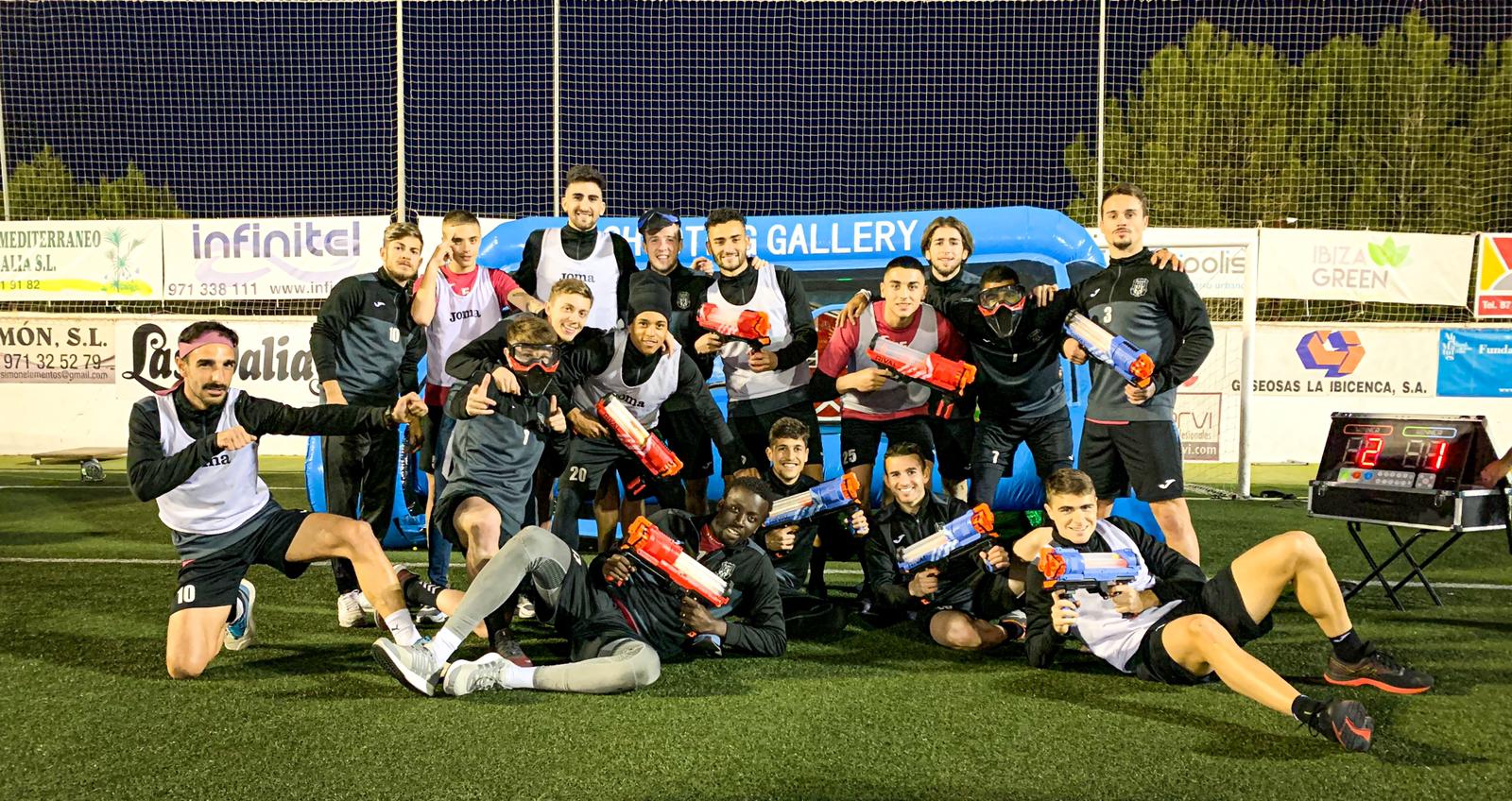 Ayer, el equipo de Segunda B saltaba al campo Municipal para disfrutar de las actividades organizadas por Laser Combat (Cachirulo).