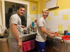 Su hermano menor comparte esa visión y reafirma que dentro de la situación que se está viviendo están pasando los días de forma alegre todos juntos pero sin dejar de lado las obligaciones del trabajo físico para no perder la forma de cara a una hipotética reanudación de los entrenamientos y la competición. “Lo pasamos bastante bien los cuatro juntos. Su hubiéramos quedado los dos solos se nos hubiera complicado mucho y siendo más se pasa mucho mejor. Mati y Bianca nos están ayudando bastante y nosotros también ayudamos en las tareas de la casa. Jugamos mucho a la Playstation, a juegos de mesa y entrenamos todos juntos. Intentamos trabajar lo más duro posible para no perder la forma física”, relata el joven jugador del ETB Hidrobal Calvià Palma Futsal que añade que “Mati me ha sorprendido en la cocina, no tenía esa faceta de él”.