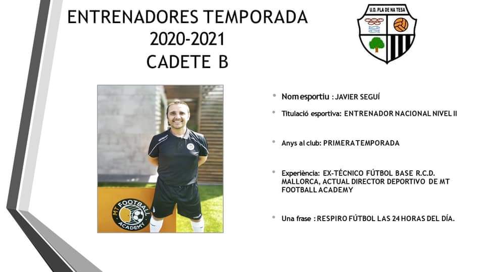 U.D.Pla de Natesa ; Javier Segui nuevo Entrenador del Cadete-B