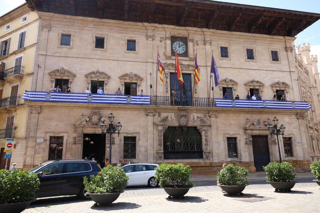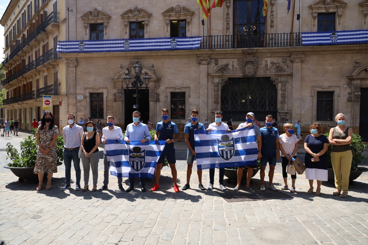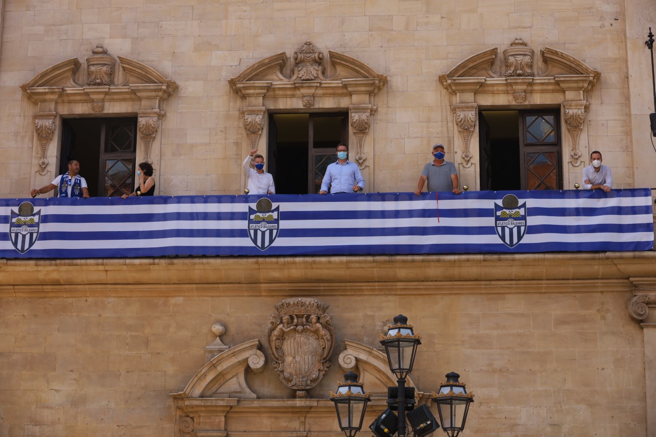 José Hila: «Junto al Atlético Baleares hemos colgado su bandera como signo de apoyo en esta eliminatoria que se juega el domingo, una oportunidad histórica que ya se merece el ascenso, después de muchos años de estar a punto. Esperamos que pueda subir y podamos celebrarlo. Ha quedado muy bien e invito a los balearicos que se hagan una foto para recordar porque nos hacía ilusión. Es histórico y bonito, si asciende es algo que se recordará. A la tercera va la vencida, se lo merece la afición por tanto apoyo y que juegue el equipo en el fútbol profesional. Estamos trabajando con el club, Delegación de Gobierno y Govern para que se celebre de forma responsable, se podrá celebrar pero sin poner en riesgo la salud de nadie».