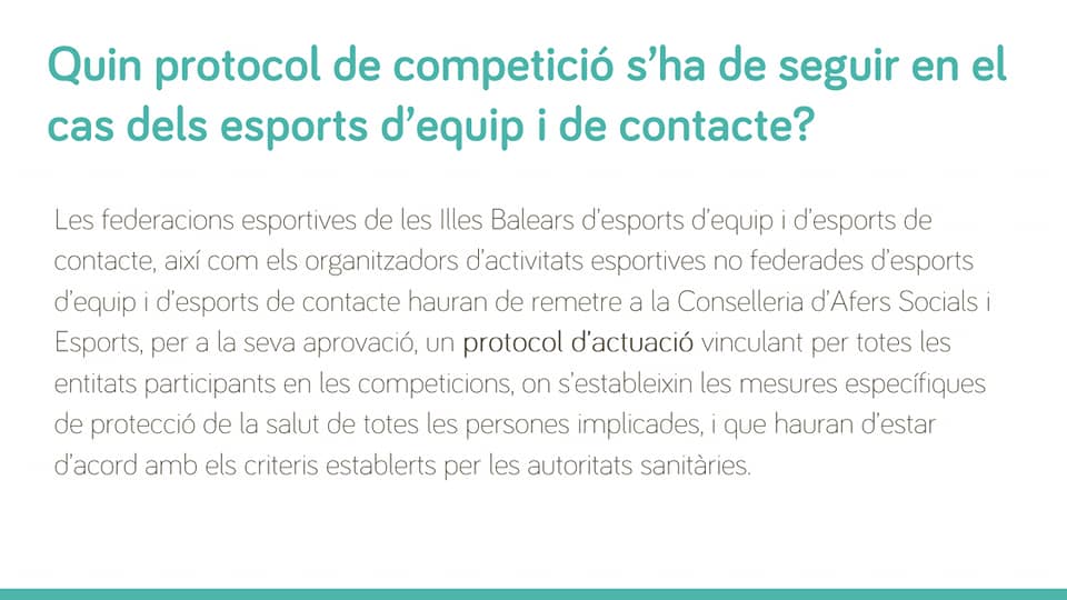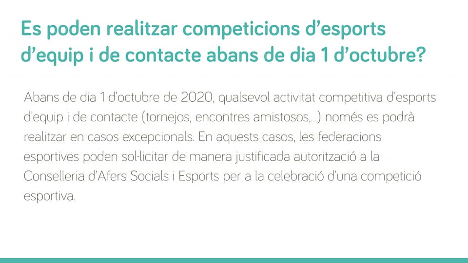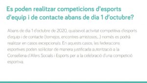 Regulació esportiva a la fase de nova normalita. FAQS II – Actualitzat a 18/08/2020