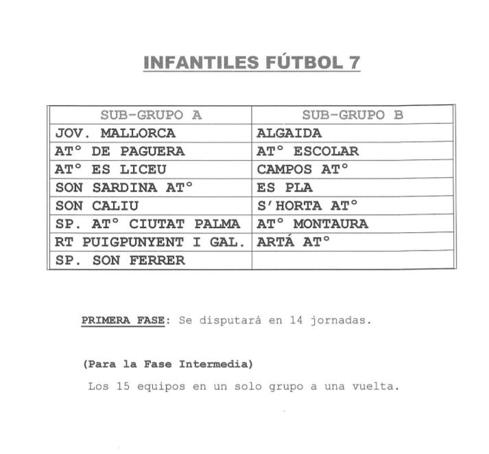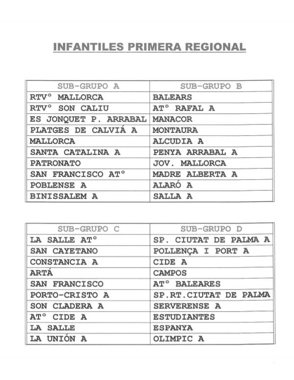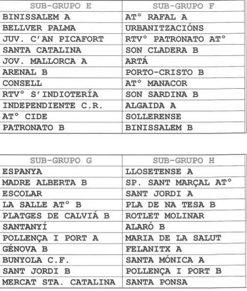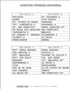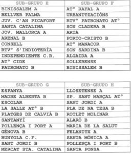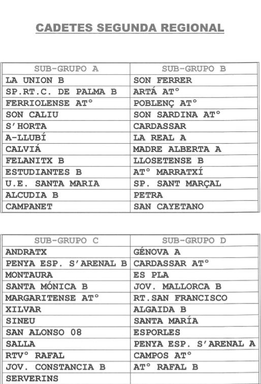 Grupos Fútbol Categorias de Cadetes a Infantiles