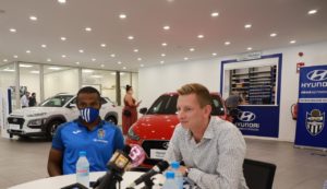 Vinicius Tanque ha sido presentado este mediodÃa en la sede del patrocinador principal del ATB, el concesionario Hyundai Proa Automoción en la calle Aragón de Palma. El delantero, fichaje de mucha repercusión mediática, ha atendido a los medios de comunicación acompañado del director deportivo, Patrick Messow, y del gerente del concesionario, Jaume Alomar. También ha asistido al acto el propietario de Hyndai Proa Automoción, Joan Pastor y el representante de ‘Vini’, Felipe Melo, quienes han conversado al finalizar el acto.