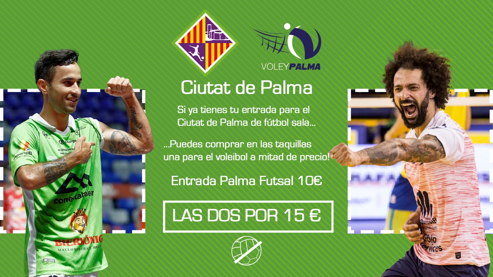 Los abonados del Palma Futsal que ya han retirado para ver a su equipo este sábado frente a ElPozo Murcia Costa Cálida en el VIII Trofeo Urbia Services THB Hotels Ciutat de Palma de fútbol sala van a poder comprar las entradas para el partido del Urbia U Energia del domingo a mitad de precio. El club pondrá a disposición de todos los que ya han comprado la entrada del partido del Palma Futsal la opción de comprar una entrada para el Ciutat de Palma de voleibol por 5 euros y que puedan tener un gran descuento para poder disfrutar de los dos eventos que se celebran este fin de semana. Los aficionados tendrán que acudir a la taquilla con la entrada que han comprado y podrán retirar la entrada para el voleibol.