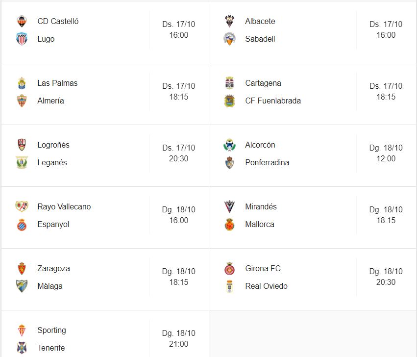 Estos son los horarios de los partidos que se disputan este fin de semana con atención especial al MIRANDES-MALLORCA (Domingo 18,15 Hrs)