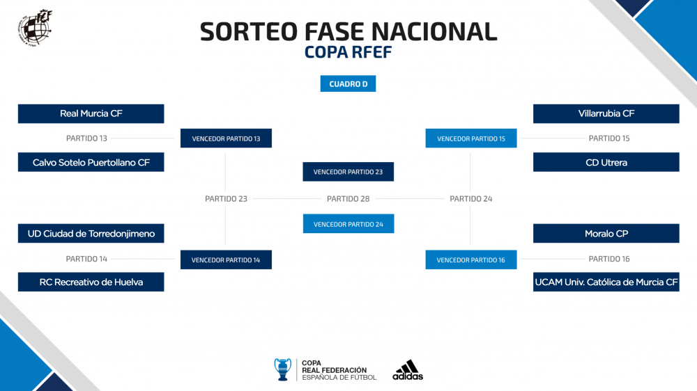 Se trata del UCAM Universidad Católica de Murcia, Calvo Sotelo Puertollano, CD Tropezón y UD Melilla, quienes lograron el miércoles superar la eliminatoria de octavos de la Copa RFEF y a los que acompañan CD Las Rozas, SD Leioa, CF Platges de Calvià y el UE Llagostera Costa Brava, que lo han conseguido este jueves.