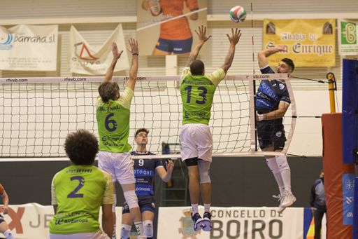 El primer set estuvo marcado desde el principio por el rendimiento de ambos equipos en la red. El Urbia U Energia intentó hacerse fuerte, aunque el Rotogal Boiro impuso un buen bloqueo que dificultó a los de Dreyer percutir en ataque. Los Pernambuco, Gaby del Carmen, Renzo y Bernal no lograban puntuar y los locales, mediante bloqueos, se llevaban gran parte de los puntos. Aún así, el marcador estuvo apretado en todo momento y el vóley Palma no perdió la cara en ningún momento a una primera manga que, finalmente, se decantó por parte del Rotogal Boiro.