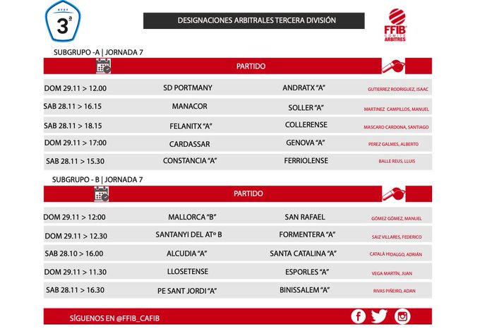 Designaciones Tercera División  28 y 29 de Noviembre de 2020