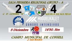 Primera Regional Mallorca Grupo A ; C.E. CONSELL «A» – 2 UD PLA DE NA TESA – 4