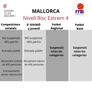 Aquestes són les mesures que hauran de seguir tots els equips del futbol federat a les Balears depenent de l’illa que visquin. La FFIB demana molta responsabilitat, prudència i sentit comú per tal de poder garantir que al gener el futbol regional i de base tornarà i cap competició més s’aturarà .