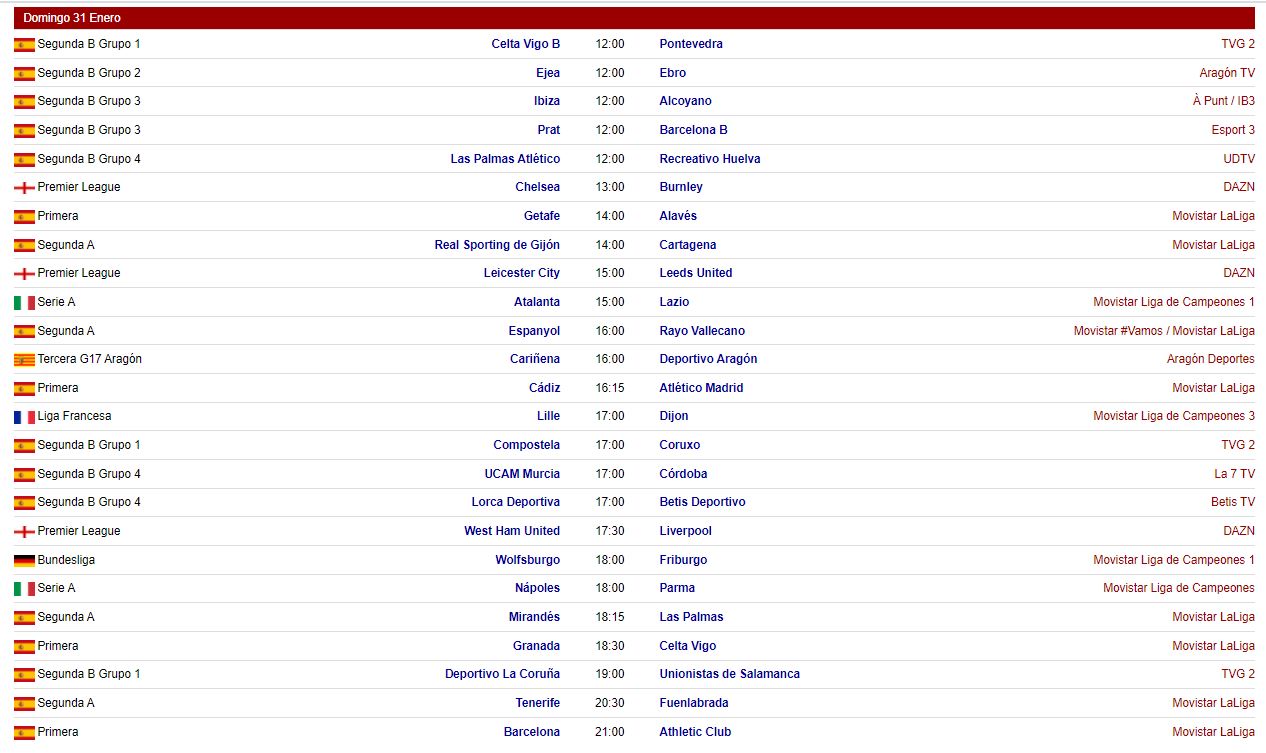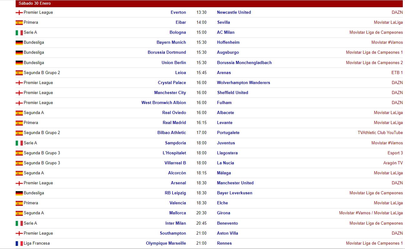 29 enero 2021 | Por lorenzo | Categoria: Fútbol, Horarios y resultados