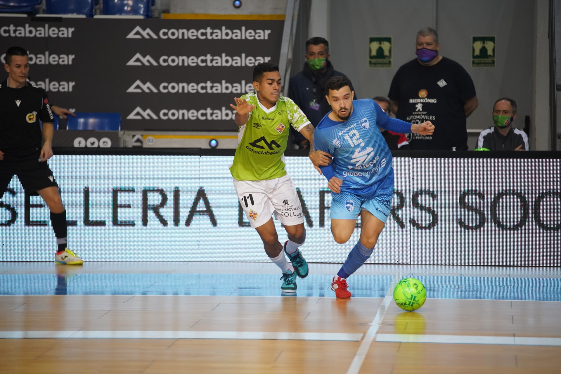 En la segunda mitad se pudo ver claramente el equipo que estaba por delante y el equipo que necesitaba marcar para sentirse vivo en el partido. Los visitantes quisieron tener el control de encuentro y el Palma Futsal, quitado de acciones individuales puntuales, parecía no ser el mismo que había