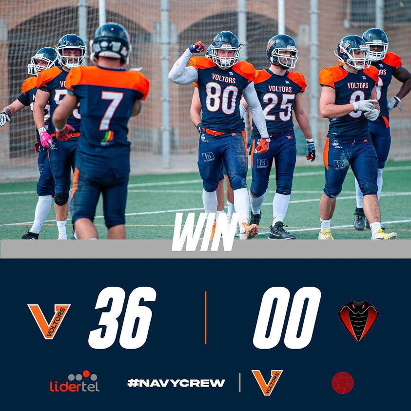 La primera parte, en la que hubo todas las anotaciones, se caracterizó por el dominio de la defensa y unos superlativos equipos especiales de Voltors con un TD de retorno para Aleksandar Borkovic #8 y otro para Jaylon Hibbs #21 y un safety de Dušan Novaković #80