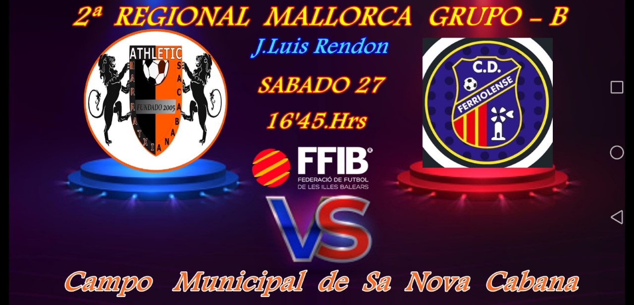 Colaborador Prensa Deportivo PREVIA PARTIDO SÁBADO 27 ( 16″45. HRS ) en el Municipal de SA NOVA CABANA encuentro de vuelta donde los locales reciben a un poderoso CF. FERRIOLENSE – B. que doblego a un debil ATHLETIC MARRATXI por un claro 5–0. y donde intentaran revertir el resultado y llevarse la victoria en su feudo para no descolgarse en el campeonato. Por parte de los palmesanos intentaran seguir con su racha de victoria y no dejar los puestos de cabeza en la competición. El encuentro será a PUERTA CERRADA y se esperan con todas las medidas COVID -19… JOSÉ LUIS RENDON MUÑOZ