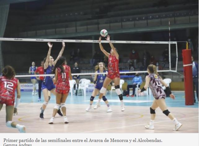El Avarca de Menorca coge ventajas en las semifinales. El conjunto de Bep Llorens ha ofrecido este sábado en el Pavelló su mejor versión y consiguió vencer, por primera vez esta temporada, al Feel Volley Alcobendas en un encuentro muy igualado y que se ha resuelto en el tie break.