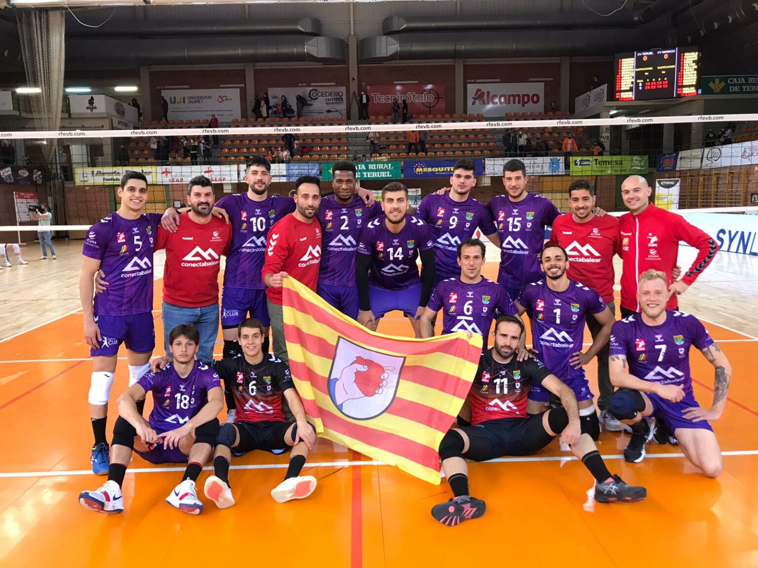 El ConectaBalear se despide de los Playoffs con la cabeza bien alta tras perder como un digno oponente el desempate ante CV Teruel, pese a protagonizar un primer set con clara solvencia y superioridad en servicio, ataque y defensa. Tarde muy emocionante la que se ha vivido en Los Planos de Teruel, con equipos de alto nivel y un último set de clara superioridad sin discusión para los hombres de Miguel Rivera. 19 puntos para Angel Rodríguez y 17 para Thomás Ereu, como máximos anotadores. 57% de recepción positiva para Manacor y un 65% de Teruel. 57% en ataque de Teruel contra el 49% de Manacor. 16 bloqueos de Teruel, contra los 6 de ConectaBalear. Hablan los números y dejan fe de la efectivad turolense en el bloqueo. Sin embargo, el ConectaBalear despide la temporada con un máximo nivel, de menos a más, y sorprendiendo en la tabla alta de la clasificación. Lluis Molada zanjó el encuentro dando la enhorabuena a Teruel y valorando positivamente la actuación de su equipo. “Vinimos a ganar. Hemos jugado muy bien el primer set y luego hemos perdido bajando los brazos. Ellos han jugado mejor que nosotros y son justos ganadores”. Sin embargo tuvo crítica para los árbitros por su actuación del día anterior. Molada zanjó con nota la actuación de su equipo “el cual estaba el año pasado en horas bajas y ahora es un equipo a tener en cuenta. Aspiramos a ser un gran equipo, paso a paso, con gente joven y con ambición”.