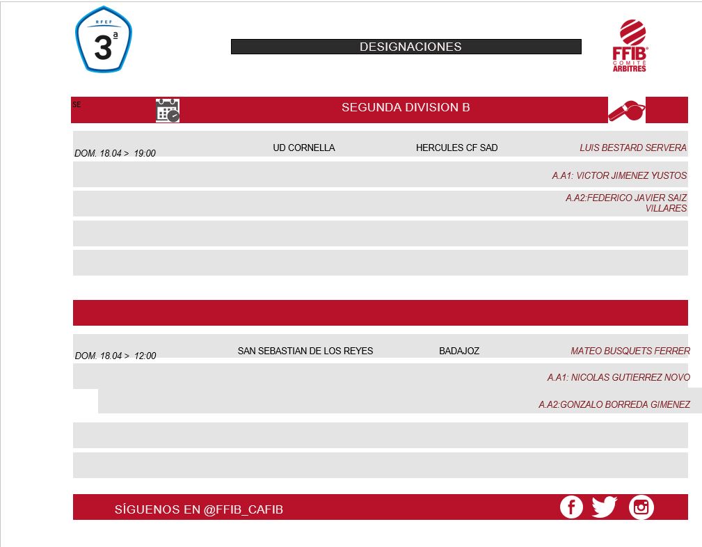 Estos son los colegiados designados para dirigir los partidos mĂĄs abajo indicados