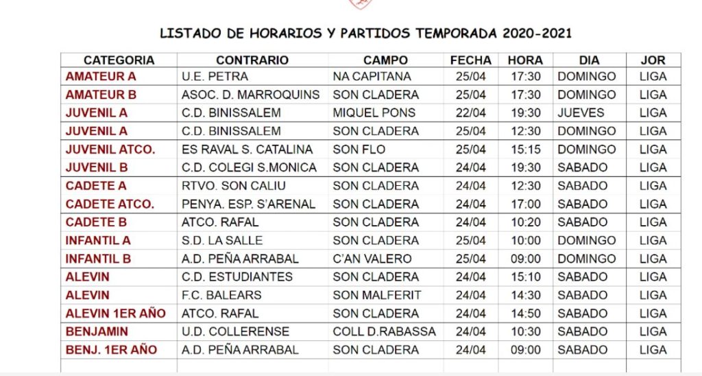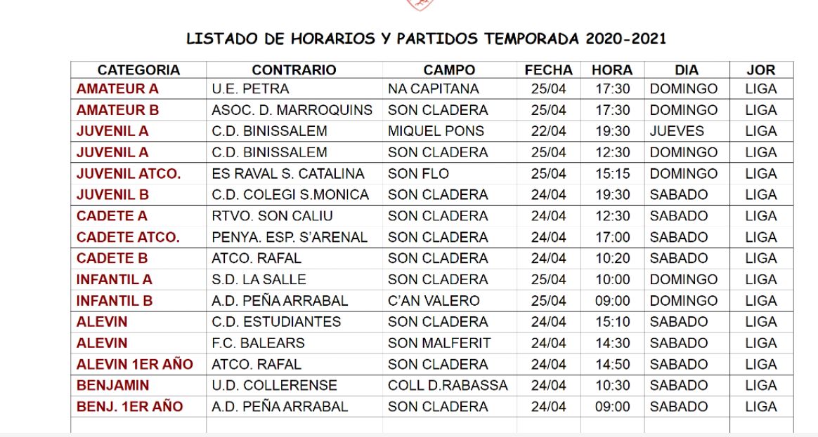 Estos son los horarios fin de semana de todos nuestros equipos del club