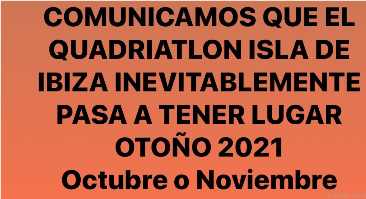 El Quadriatlon Isla de Ibiza previsto para el 8 de mayo…pasa a tener lugar en otoño, octubre o noviembre 2021