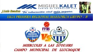 Su rival el ESPAÑA DE LLUCMAJOR recibe un equipo con una delantera potente que marca la diferencia, pero siempre es dificil de doblegar en casa, donde el equipo local hace un fútbol muy directo y un buen toque de balon, esperemos que pueda con el potente rival que recibe este Miercoles.