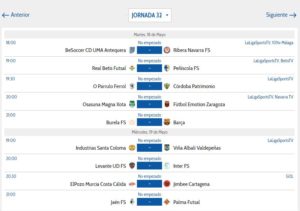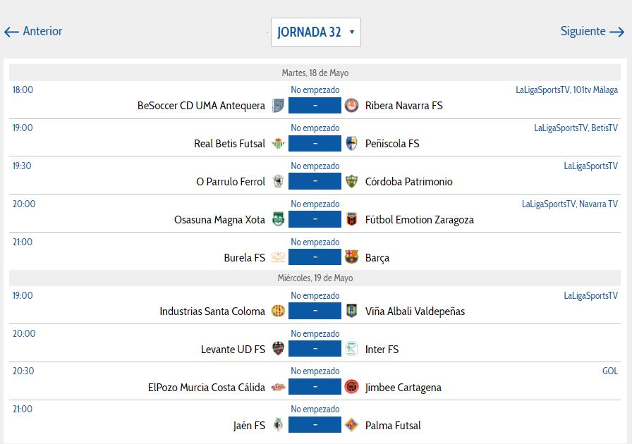 Llegamos a la Jornada 32 en la maxÃma categoria del Fútbol sala, estos son los Horarios