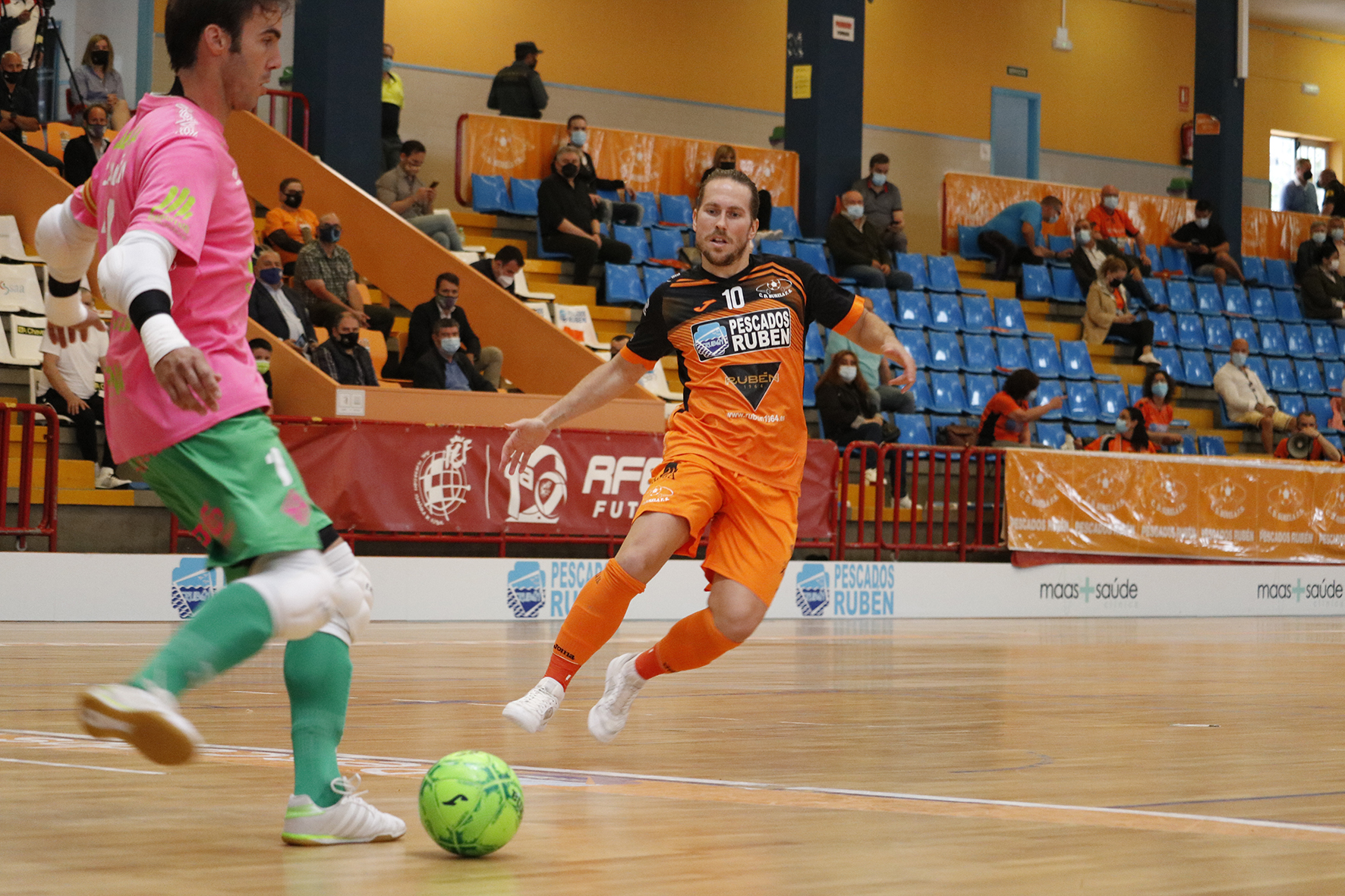 jugar tras el empate con el que finalizó el partido. La tarde comenzó de la mejor manera para los isleños con el gol de Diego Nunes que suponía avanzarse en el marcador. Pese a la ventaja, el partido no era nada sencillo. El cuadro balear trató de tener la posesión del esférico jugando con la ventaja del gol y esperando crear alguna ocasión para ampliar la ventaja y frente a un rival que sabía que se jugaba la vida y no podía cometer errores. El Palma Futsal fue superior en una primera parte en la que las ocasiones fueron contadas y con Carlos Barrón como un seguro de vida bajo palos. El encuentro se abrió tras el descanso. Los locales necesitaban ganar y pusieron todo lo que tenían sobre la pista. Renato marcó el empate a los cuatro minutos y aprovechó un comienzo de segunda parte en la que los locales fueron superiores a los mallorquines. Lolo mandó el balón al palo en una ocasión muy clara para su equipo y con la portería vacía y el rechace lo aprovechó el cuadro gallego para montar una rápida contra que finalizó con el gol de Iago Míguez. Los locales le daban la vuelta al marcador y reducían las opciones de que el Palma Futsal finalizase como campeón de la fase regular por mucho que le beneficiaba el resultada que se daba en Murcia. Vadillo fue a por la victoria y apostó de inmediato por Raúl Campos como portero-jugador. Nunes tuvo el tanto del empate pero Edu, el meta local, rechazó el disparo del brasileño y Iago Míguez aprovechó el esférico para marcar el tercero a puerta vacía y a cuatro minutos del final del partido. La situación era límite pero el Palma Futsal siguió creyendo en sus opciones y en un minuto marcó dos goles que abrían de par en par las puertas de la esperanza. Vilela marcó el segundo tras una gran acción de Hígor y también anotó el tercero segundos después poniendo el empate en el marcador a más de dos minutos para el final. El desenlace estuvo cargado de goles con dos equipos volcados en ataque para ganar el partido. Javi Rodríguez, ex del Palma Futsal, adelantó a su equipo a dos minutos del final y Lolo estableció el empate definitivo cuando quedaban