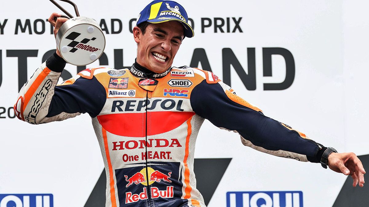 Márquez, por su parte, se descartó tras los entrenamientos de la pelea por la victoria, y por primera vez en diez años no salÃa desde la ‘pole position’ en Sachsenring, pero él sabÃa que tenÃa una mÃnima oportunidad de pelear por la victoria y la buscó con todo el ahÃnco del mundo. La tÃmida lluvia que comenzó a caer y cesó rápidamente le dio el tiempo suficiente para lograr una ventaja irrecuperable para ninguno de sus rivales. El piloto de Repsol Honda, que salió quinto, no tardó ni una curva en ponerse segundo y al término de esa primera vuelta ya era lÃder para comandar desde entonces la carrera alemana de la primera a la última vuelta