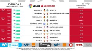 El Mallorca ya sabe cuándo debutará ante el Betis. Será el sábado 14 de agosto a partir de las 19:30 horas en Son Moix. La Liga ha hecho públicos esta tarde los horarios de la primera jornada de Primera División. El encuentro entre el Valencia y Getafe dará inicio a una nueva temporada el viernes 13 a partir de las 21 horas en Mestalla.