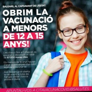 La FFIB, en consonà ncia amb les autoritats sanità ries, anima a tots els menors de 12 a 15 anys, del nostre futbol i futbol sala base balear, a vacunar-se.