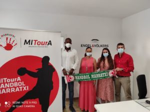 Miembros de la directiva, Sebas Amengual Vicepresidente y Pedro Samuel Salvador, han posado junto a Julio Fis en las fotos de presentación con el MITourA Handbol MarratxÃ, también Maya Deutsch, de la oficina patrocinadora premium del club.