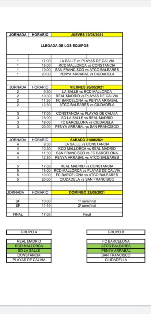 HORARIOS Y CALENDARIOS COMPETICION