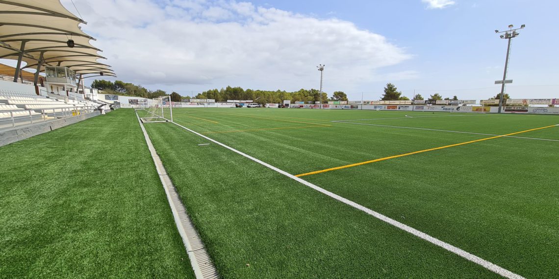 Así luce el campo de fútbol de Santa Eulària tras la sustitución del césped artificial