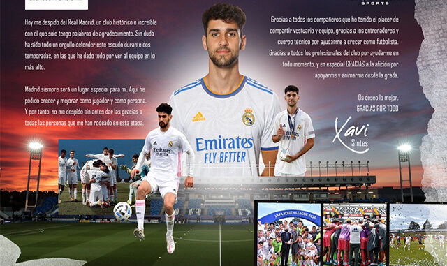 El futbolista Xavi Sintes ha oficializado este viernes su salida del Real Madrid B. Lo ha hecho con un mensaje de despedida a todos los madridistas en el que les agradece todo el apoyo recibido en su etapa en el club al que define como histórico e increÃble. Lo hace acompañado de fotografÃas de sus mejores momentos en Valdebebas cómo cuando logró la Uefa Youth League.