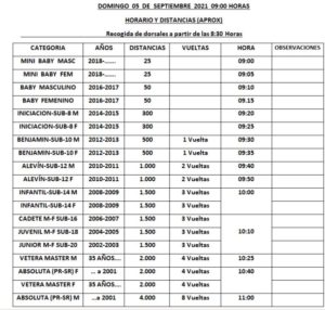 Todas las carreras igual masc y fem excepto la absoluta fem que serán 2.000 metros.