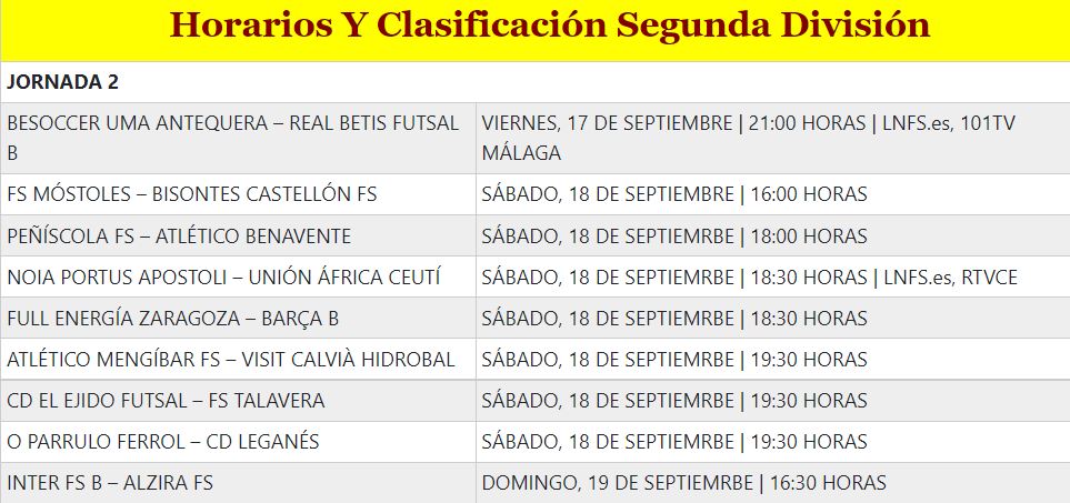 Horarios Y Clasificación Segunda División