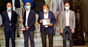El president Miquel Bestard ha assistit a Cort a la presentació del VIII Trofeu Cituat de Palma Grupo Osa, que disputaran el Palma Futsal contra el FC Barcelona.