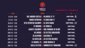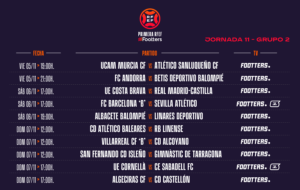 Desde este lunes, la Primera RFEF Footters ya conoce sus horarios hasta el próximo domingo 14 de noviembre -casi siete semanas antes de la celebración de los partidos- con cuatro nuevas y apasionantes jornadas a sumar a las que se disputarán durante las próximas fechas.