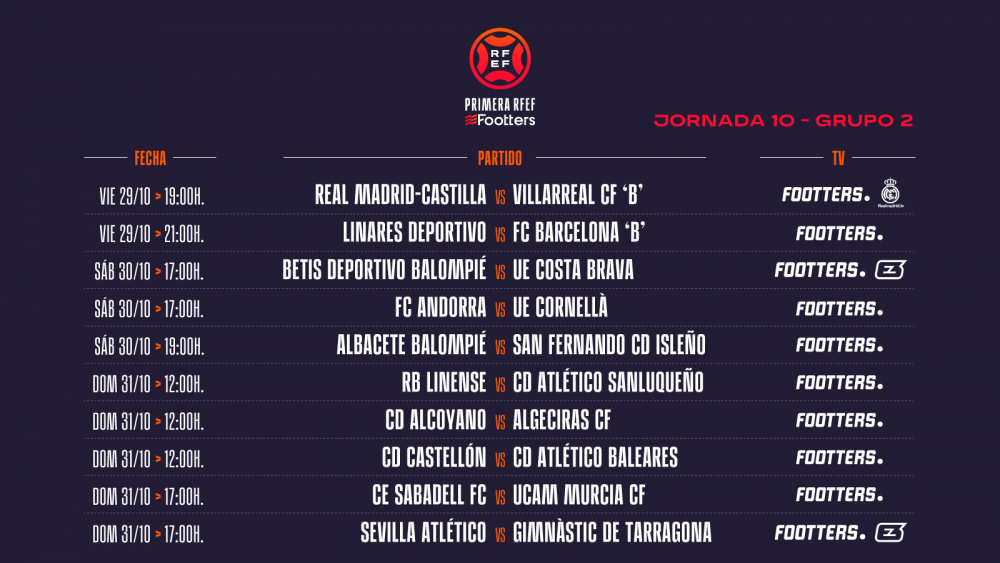 Primera RFEF ; Horarios de las proxímas cuatro Jornadas