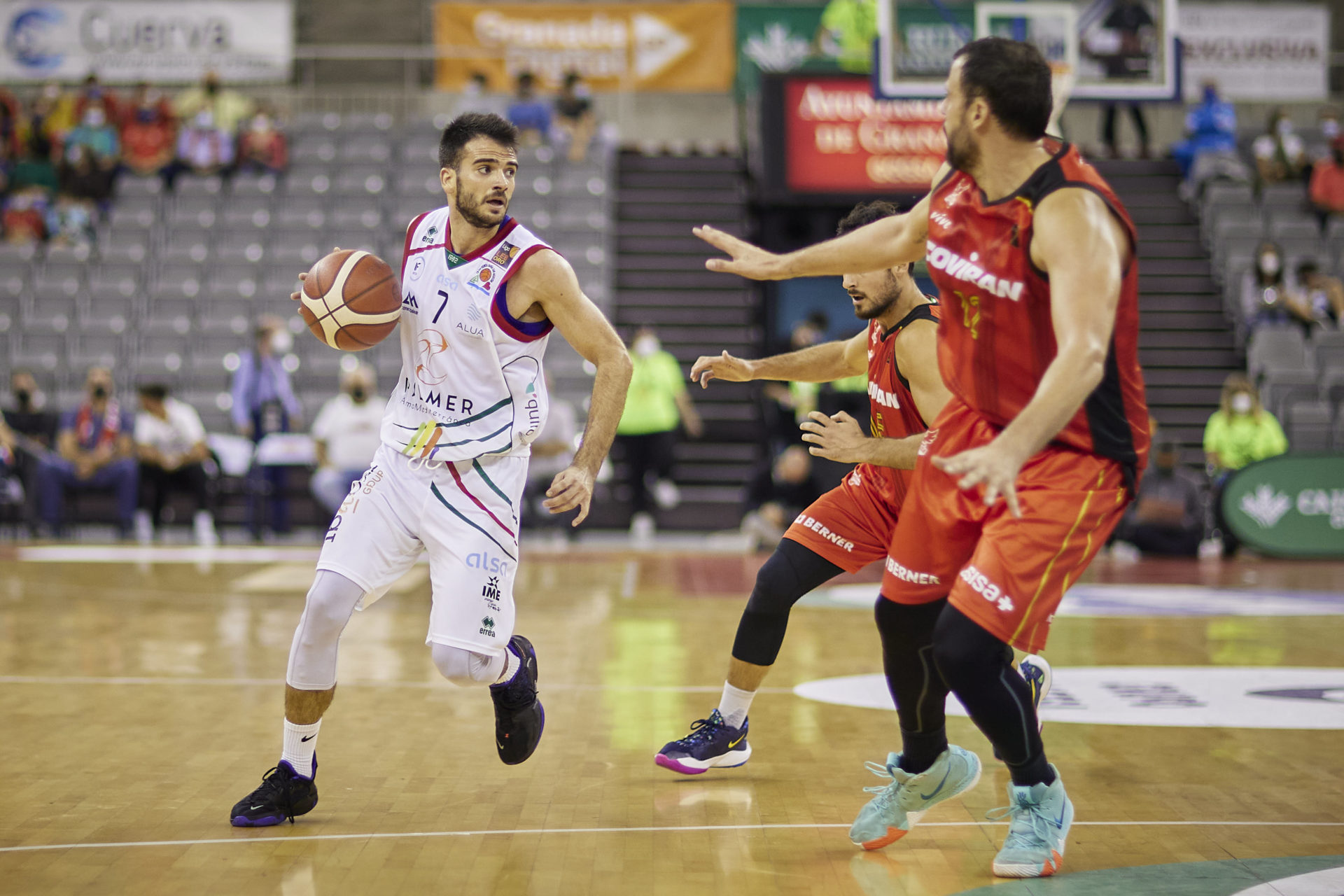 El Palmer Alma Mediterránea Palma no ha podido sumar hoy su primera victoria de la temporada al caer por 78-62 ante el Covirán Granada en un partido en el que el equipo mallroquín ha peleado ante uno de los mejores equipos de la categoría pero ha acabado hincando la rodilla tras un irregular último cuarto. Arrancaba el encuentro con un 5-0 inicial para Granada pero casi de inmediato Amadi Ikpeze anotaba cuatro puntos para recortar distancias en unos primeros compases de partido y con los dos equipos mostrándose respeto en los primeros minutos parando Pau Tomàs y Álex Pé-rez el partido tras situarse el marcador en 9-6. Tras una serie de minutos de poco acierto visitante y mejor nivel local el marcador llegaba al 17-12 pero un triple de Pol Figueras y una canasta de Fje-llerup servían para acercar a los mallorquines en el marcador tras anotar Edu Gatell (19-17). Jacobo Díaz, con cinco puntos consecutivos dejaba el marcador en 24-17 llegándose al final del primer cuarto con 26-20 tras un triple de Víctor Moreno y una canasta sobre la bocina de Ellisor para el Covirán Granada.