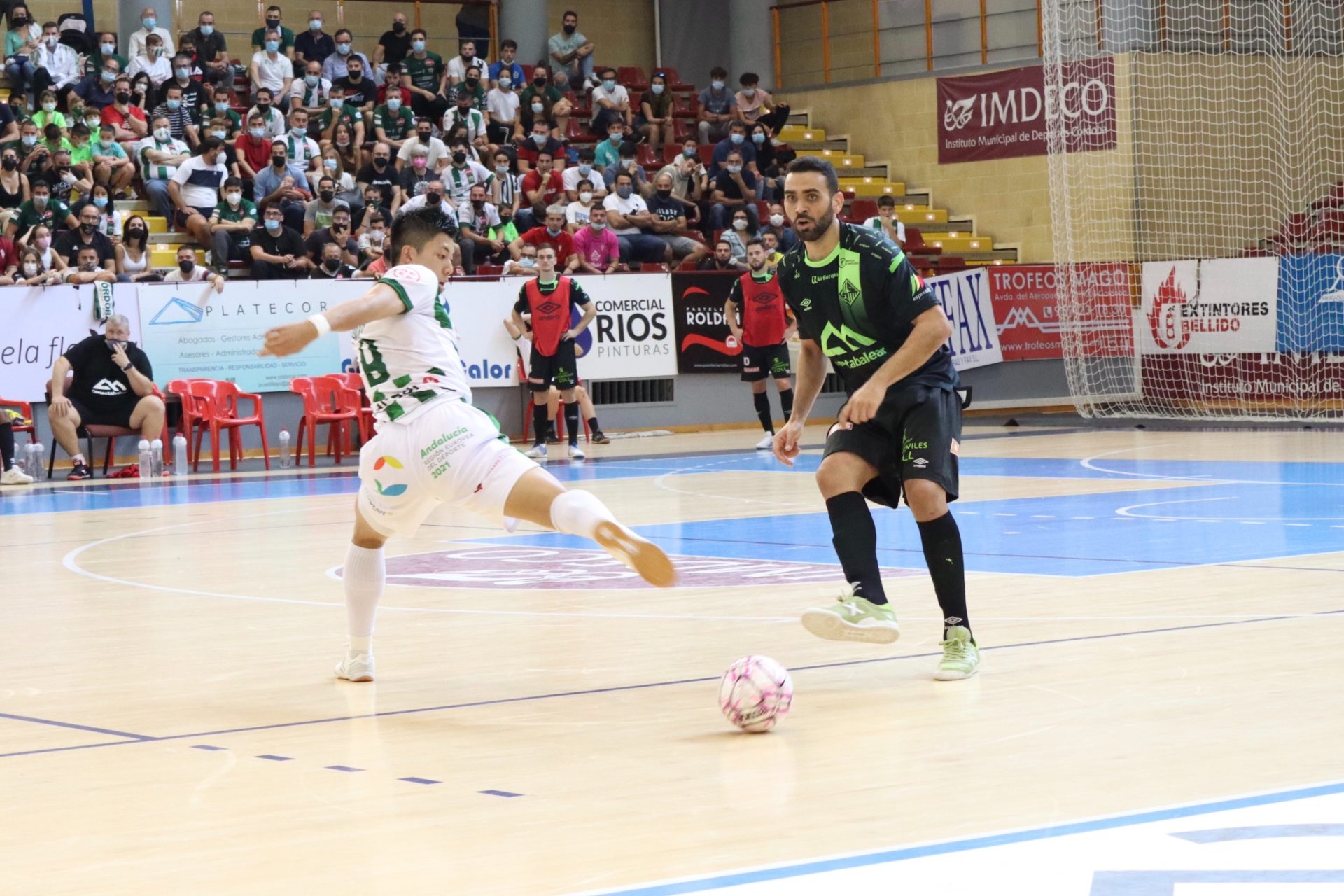 El Palma Futsal afrontaba su primera salida de la liga en un pabellón en el que la temporada pasada le costó horrores sacar un punto. Los de Vadillo, quien cumplía su segundo y último partido de sanción, querían confirmar las buenas sensaciones que llevan transmitiendo desde el inicio de pretemporada y que en la primera jornada ratificó ante el Barça con una goleada. Sea por esas ganas de seguir ganando, por inercia, por interiorización del juego o por la combinación de las tres, el Palma Futsal tardó menos de un minuto en ponerse por delante en el marcador. Una contra brillante conducida por Higor, Nunes y Mancuso terminó en los pies de este último y superó a Cristian para registrar el primer gol en el electrónico de la mañana. Los baleares salieron dispuestos a todo y a conseguir su primer triunfo a domicilio de la temporada. Aunque, a pesar de los buenos primeros minutos cuajados por el Palma Futsal, el Córdoba, a medida que se fue desarrollando el partido fue subiendo líneas y la intensidad. El conjunto mallorquín conseguía mantener la portería a cero con un gran Fabio que protagonizó varias intervenciones de mérito. Aún así, los andaluces se volcaron en ataque y, tras dos palos, primero de Shimizu y luego de Zequi, logró encontrar el hueco en la portería balear. Pase largo de Cristian desde su portería que encuentra la cabeza de Ismael en el borde del área del Palma, quien la peina lo suficiente para desviar el balón y despistar a Fabio. Tablas en el marcador con un partido muy apretado, intenso y eléctrico en el que cada equipo jugaba su partido. Córdoba quería seguir llevando la manija del encuentro, viendo los buenos resultados que le estaba dando, y Palma Futsal se sentía cómodo defendiendo y saliendo a la contra, aunque con aspectos a mejorar para sufrir menos atrás. De esta manera el partido se fue al descanso, con ambos conjuntos sabiendo que estaban vivos y que dependía de ellos la posible victoria en esta segunda jornada de liga.