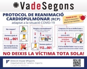 l Consell de Mallorca, la Federació de Futbol de les Illes Balears i els ajuntaments col•laboren en la campanya #VadeSegons per actualitzar el protocol de reanimació cardiopulmonar adaptat a la situació covid-19 i fomentar una actuació ràpida en casos d’accidents esportius.