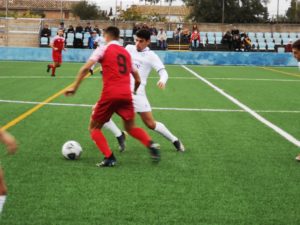 minuto 39″. Obra del jugador N’ 23 DANI VALCANERAS. Pero la insistencia de los visitantes y mejor juego no tuvieron su fruto y en el minuto 42″ el jugador N’ 9 PEDRO GONZÁLEZ conseguia el 2-0. Llegando al final de la primera parte. SEGUNDA PARTE Comienza con mas intensidad juego duro con nuchas faltas e interrupciones por ambos equipos pero en una contra, balon al area y el jugador visitante N’ 3 MANUEL TRUJILLO acorta distancias colocando el 2-1.