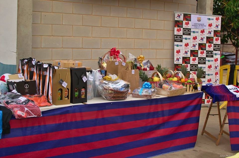 –         10 pilotes blaugranes i 5 llibres del Barça, donats per la Confederació Mundial de Penyes