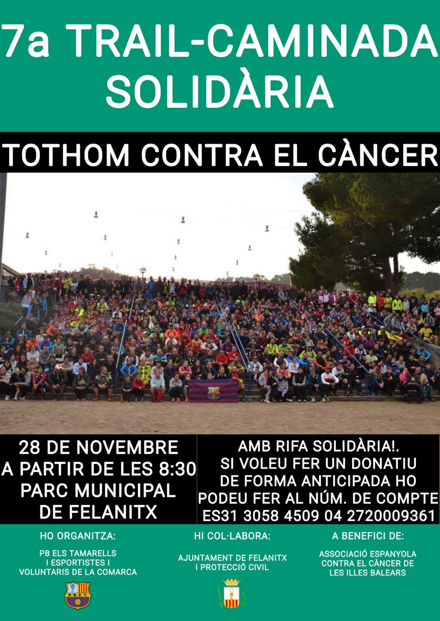 Estam a punt de viure una altra jornada histórica, demà diumenge la PB Els Tamarells, juntament amb esportistes i voluntaris de la comarca, celebra la setena edició de la Trail Solidà ria, en aquest 2021 enfocada a aconseguir recursos per a la lluita contra el cáncer.