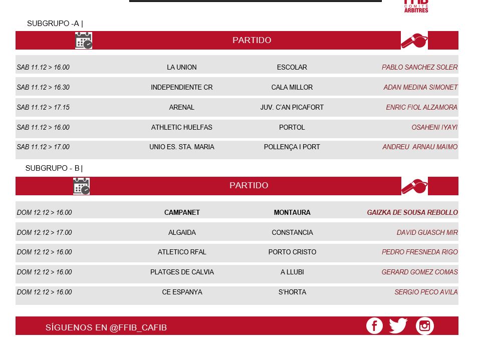 DESIGNACIONES ARBITRALES 11 y 12 diciembre