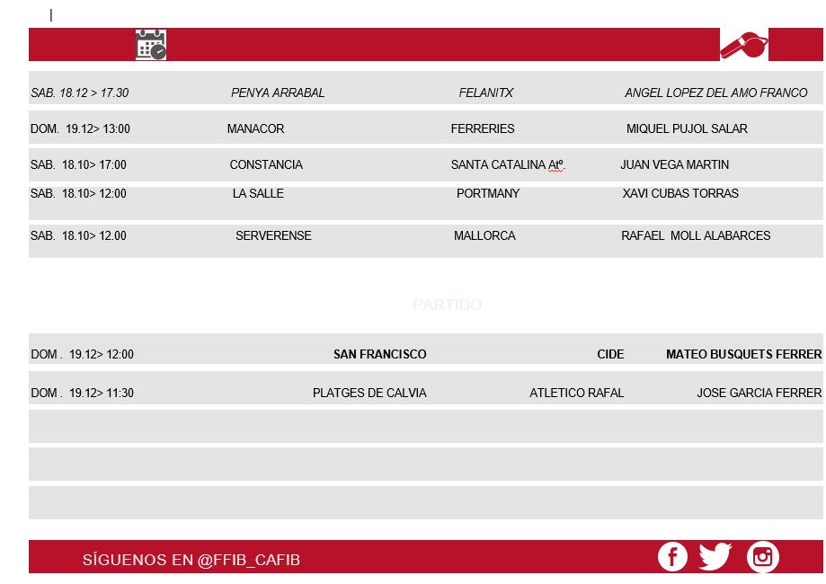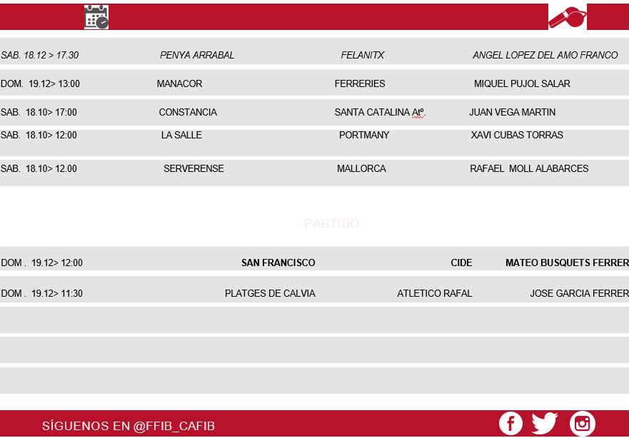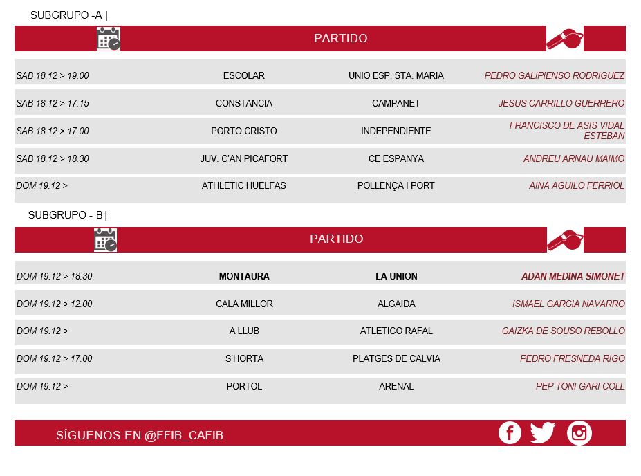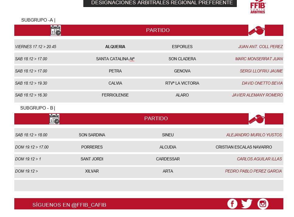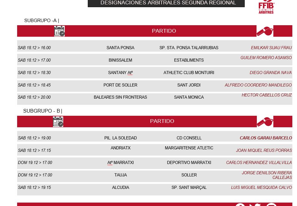 Designaciones Arbitrales 18 y 19 de Diciembre