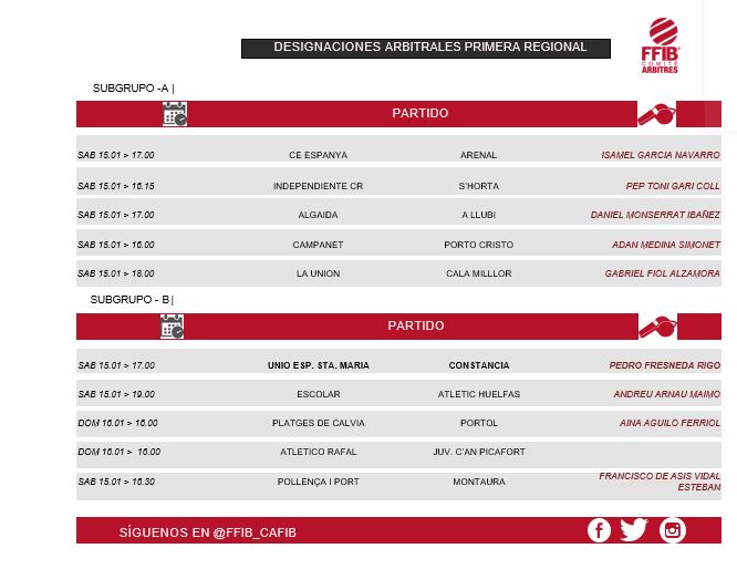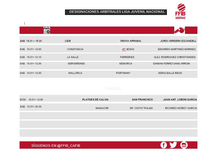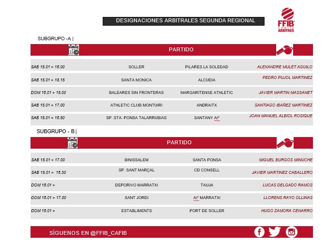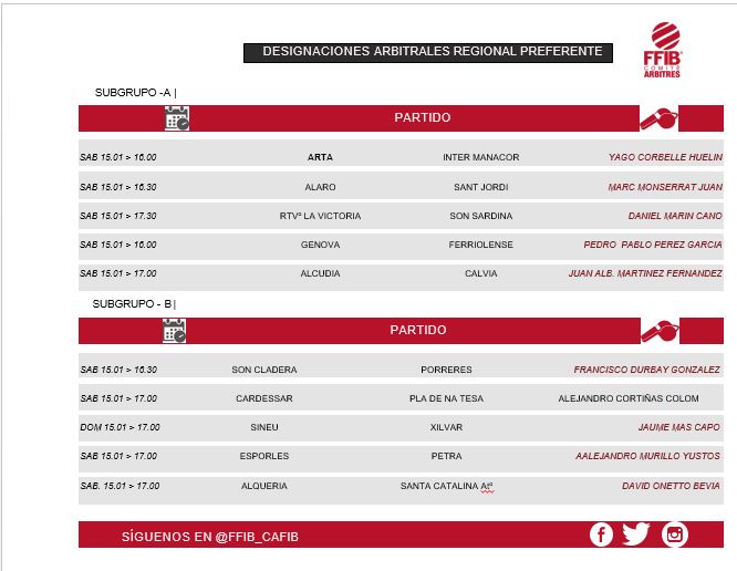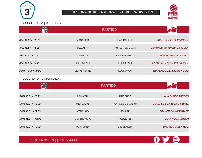 Estos son los colegiados designados para dirigir los partidos mas abajo indicados