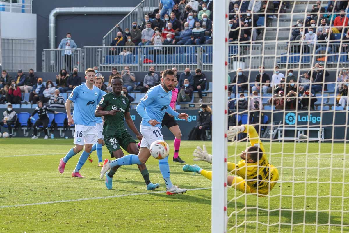 Raúl Sánchez, la gran novedad en la alineación celeste, comenzó a aparecer por el perfil zurdo aunque fue con la pierna diestra con la que remachó un robo en ataque de Escobar. El disparo del debutante se marchó a las nubes, pero mostró el camino para el asedio al área rival. A los 18 minutos, el carrilero argentino encontró una fisura por su banda y puso un excelente centro al segundo palo, donde no llegó por un palmo Fran Grima, el otro lateral del equipo. Poco después le llegó el turno a Cristian Herrera, que tras internarse en el área remató por bajo encontrando la respuesta del guardameta Dani Jiménez. El goleador canario lo probó pasada la media hora de juego con un eslalon hasta el corazón del área, donde le frenó la retaguardia de Nafti.