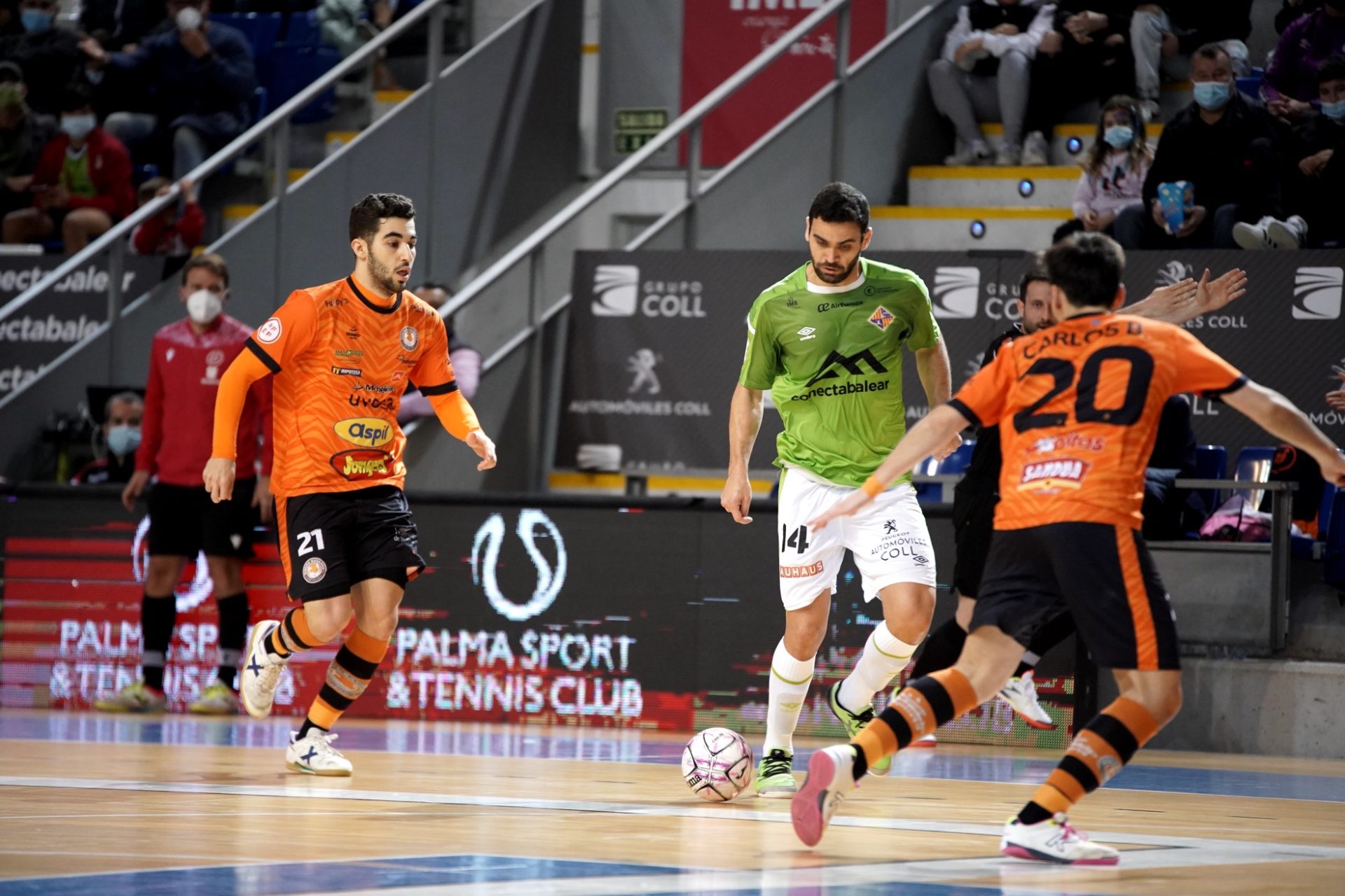 El Palma Futsal salió a la pista ante los 3.200 espectadores que se dieron cita en el Palau Municipal d’Esports de Son Moix con el reto de dar continuidad a la racha de victorias. A pesar de las bajas de Chaguinha, por lesión, y Cainan, se quedó fuera de la lista definitiva al llegar de Brasil la misma tarde del partido y sin haber podido entrenar, el equipo salió a ganar desde el primer minuto y con la intención de dominar al rival pero no era un partido nada sencillo. Como en casi todos los partidos, la clasificación no juega y sirve de poco porque el nivel competitivo de la Primera División exige no bajar el rendimiento ningún partido. Higor tuvo la primera nada más comenzar el partido pero no pudo regatear a Marcao, que le detuvo un buen disparo pocos segundos después. Buen comienzo de los baleares con su puesta en escena habitual. Con el paso de los minutos, el encuentro se fue equilibrando sin que hubiera muchas ocasiones. Partido físico, táctico y en el que ya se intuía que no habría muchos goles. Tocaba ponerse el mono de trabajo para un partido duro.